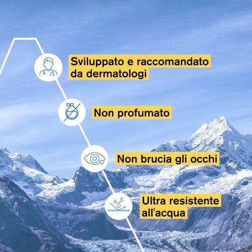 Protezione solare molto alta, resistente all’acqua, ideale per viso e corpo dei più piccoli