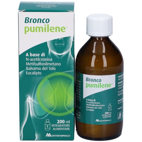 Tag: Broncopumilene, Montefarmaco, sciroppo tosse, integratore alimentare, tosse grassa, muco, catarro, vie respiratorie, fluidificante, eucalipto, N-acetilcisteina, balsamo del tolù, lenitivo gola, 200 ml