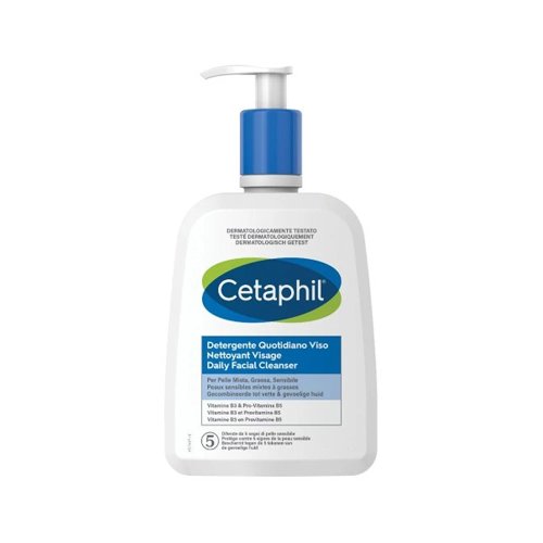 Cetaphil Detergente Quotidiano Viso è un gel purificante delicato, ideale per la detersione quotidiana della pelle mista, grassa e sensibile. Formulato con Vitamina B3 (Niacinamide) e Pro-Vitamina B5 (Pantenolo), rimuove efficacemente impurità, eccesso di sebo e residui di make-up, lasciando la pelle detersa, morbida e riequilibrata. La sua texture in gel sviluppa una schiuma leggera e non aggressiva, che non secca la pelle e preserva la barriera cutanea naturale, garantendo una sensazione di freschezza e pulizia. Adatto all’uso quotidiano, è dermatologicamente testato e indicato anche in caso di cute sensibile soggetta ad arrossamenti o irritazioni.