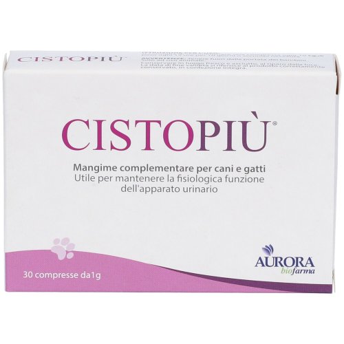 Aurora BioPharma Cistopiù è un mangime complementare in compresse formulato per contribuire al benessere delle vie urinarie di cani e gatti. Grazie a una combinazione sinergica di estratti vegetali, agisce efficacemente nel: