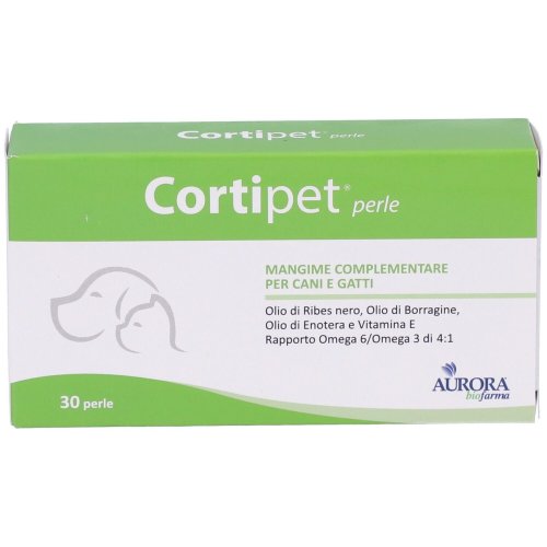 Cortipet 30 Perle di Aurora Biofarma è un mangime complementare formulato per cani e gatti con problematiche cutanee come dermatiti, prurito, desquamazione o pelo spento. Grazie alla presenza di acidi grassi essenziali Omega 3, Omega 6 e GLA, favorisce la rigenerazione della barriera cutanea e il miglioramento del mantello, rendendolo più sano e lucido. La formula contiene un’esclusiva combinazione di oli vegetali (ribes nero, borragine ed enotera), noti per le loro proprietà antinfiammatorie naturali, e vitamina E, potente antiossidante. Cortipet è indicato sia in fase di mantenimento che durante episodi acuti di fastidi dermatologici, contribuendo a ridurre il prurito e la perdita di pelo. Prodotto con ingredienti di alta qualità, è ideale per integrare l’alimentazione quotidiana dell’animale e migliorare il suo benessere generale.