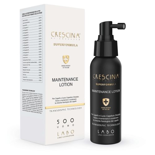 CRESCINA MAINTENANCE LOTION è una lozione spray che contiene tutte le componentiattive del trattamento in fiale, in dosaggio ottimizzato per consentire il protocollopiù adeguato idoneo a fornire continuativamente ai bulbi e ai follicoli piliferisia singoli che appartenenti alle isole follicolari, le sostanze nutritive ed energetichedi cui hanno bisogno per mantenere e consolidare i risultati ottenuti. aiuta afortificare i capelli in fase anagen e sostenere il naturale processo di crescita deicapelli. CRESCINA MAINTENANCE LOTION è adatta all'utilizzo come proseguimento dopoil ciclo di due mesi di crescina in fiale, oppure come trattamento di mantenimento daapplicare in qualsiasi momento e/o al bisogno. lndicata nei casi di diradamentodipendente da cause fisiologiche e non patologiche. Non agisce sui follicolicompletamente atrofizzati. La formula, più delicata e leggera rispetto allaformula in fiale, contiene il complesso ri-crescita (cisteina, lisina, glicoproteina)associato al nuovo componente potassium azeloyl diglycinate specifico per il diradamentoprogressivo, il complesso isole follicolari, il complesso HFSC (stem-engine) e ilcomplesso hair booster 177, il complesso Neo-MITO - mitochondria (nonapeptide-1,magnesium gluconate, carnitine fumarate più SOD- like e calcium PCA) e 12 molecoleplate-like di sintesi simili alle molecole peptidiche endogene presenti naturalmente nelsistema pilifero. Sul microbioma del cuoio capelluto agisce lo scalp microbiome complex(sarcosine e Pseudoalteromonas ferment extract) per mantenerlo in condizioni ottimali.Contiene inoltre resveratrolo, fitoestrogeno di origine naturale, ad attivitàprotettiva sui follicoli dei capelli femminili.