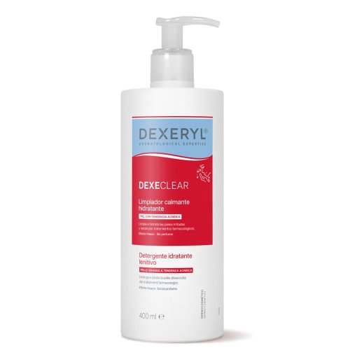 Tag: Dexeryl, Dexeclear, detergente idratante, detergente lenitivo, pelle acneica, pelle grassa, riduzione prurito, pH fisiologico, senza sapone, senza profumo, viso e corpo, uso quotidiano, 400 ml, adolescenti, adulti