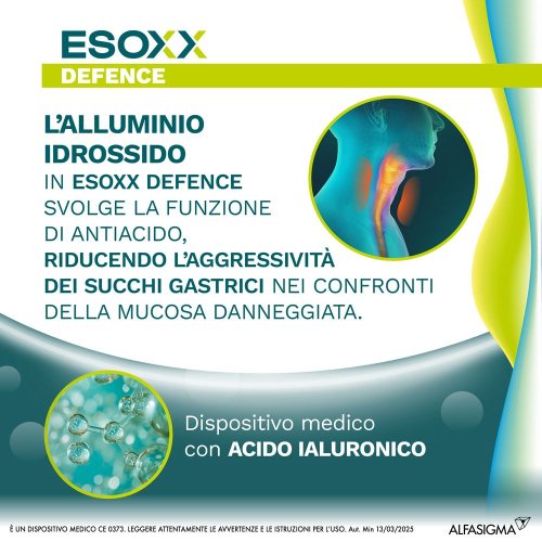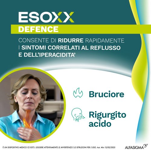 Le Esoxx Defence Compresse Masticabili sono un dispositivo medico ad azione meccanica indicato per il trattamento rapido dei sintomi del reflusso gastro-esofageo. Grazie alla combinazione di Condroitina Solfato e Acido Ialuronico, formano un film protettivo che aderisce alla mucosa esofagea, contribuendo a ridurre irritazione, bruciore e dolore. Sono particolarmente utili in caso di: