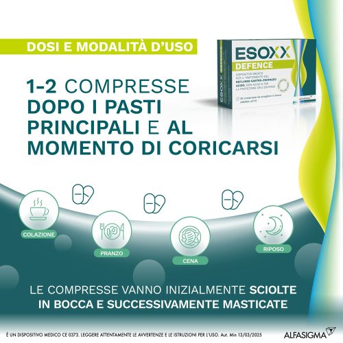 Tag: Esoxx, Defence, compresse masticabili, reflusso gastroesofageo, pirosi, bruciore di stomaco, dispositivo medico, sollievo rapido, aroma latte, protezione esofago