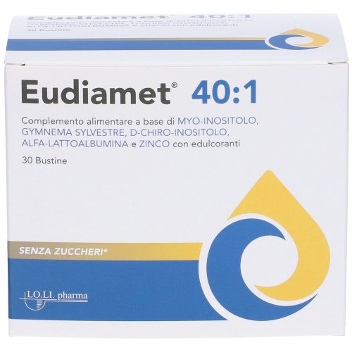 EUDIAMET 40:1 è un integratore alimentare sviluppato da Lo.Li.Pharma, formulato con myo-inositolo, D-chiro-inositolo (in rapporto ottimale 40:1), Gymnema sylvestre, alfa-lattoalbumina e zinco, per favorire l’equilibrio dei parametri metabolici e glicemici, in particolare in situazioni di alterazioni come iperglicemia, prediabete o sindrome metabolica. Il myo-inositolo e il D-chiro-inositolo sono molecole essenziali nel metabolismo dei carboidrati e nel supporto alla sensibilità insulinica. La Gymnema sylvestre è nota per la sua azione nel contrastare l'assorbimento del glucosio, mentre l'alfa-lattoalbumina migliora la biodisponibilità degli inositoli. Il zinco contribuisce al normale metabolismo dei carboidrati e alla protezione delle cellule dallo stress ossidativo. Eudiamet 40:1 è adatto a bambini (dai 3 anni), adolescenti e adulti, ed è dolcificato con eritritolo e glicosidi steviolici. Senza glutine, contiene proteine del latte.