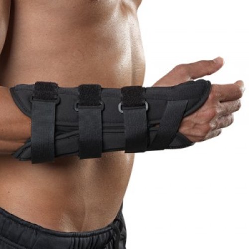 Inserire la mano nel tutore come se fosse un guanto. Allineare la stecca palmare con l’avambraccio. Regolare le quattro cinghie per ottenere un supporto saldo ma confortevole. Se necessario, tagliare le cinghie per adattarle alla lunghezza desiderata.