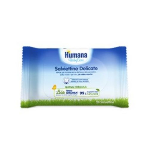 Le Salviette Delicate Humana Baby Care sono ideali per detergere in modo delicato l’area del pannolino, mani e viso dei più piccoli. Realizzate con il 99% di ingredienti di origine naturale e arricchite con Humana Bio Idramilk®, un esclusivo mix di latti vegetali biologici di avena, mandorla e riso, che offre una potente azione idratante. Dermatologicamente testate su pelli sensibili, queste salviettine lasciano la pelle fresca, profumata e subito asciutta, aiutando a preservare l’equilibrio idrolipidico e a mantenere integra la barriera cutanea del bambino.
