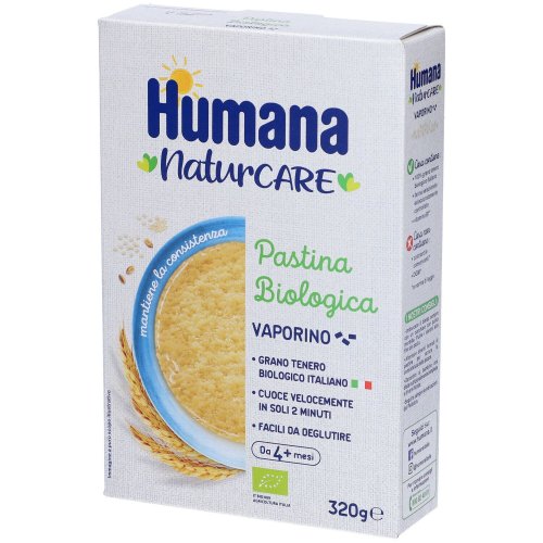 Humana Vaporino Pastina Biologica è un alimento pensato per accompagnare il tuo bambino nella fase dello svezzamento, a partire dal 4° mese compiuto, salvo diverso parere del pediatra. Prodotta con ingredienti da agricoltura biologica e con pochi passaggi produttivi per preservarne la naturalezza, questa pastina è facile da digerire, cuoce in soli 2 minuti ed è studiata appositamente per adattarsi alle esigenze nutrizionali dei più piccoli. Arricchita con vitamina B1, utile al corretto sviluppo del metabolismo energetico, è priva di OGM, conservanti e coloranti, come previsto dalla normativa vigente.