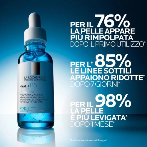 La Roche-Posay Hyalu B5 Siero Concentrato è una formula dermocosmetica avanzata che combina Acido Ialuronico puro e Vitamina B5 per un’azione rimpolpante e riparatrice sulla barriera cutanea. La sua texture leggera e fresca si assorbe rapidamente, lasciando la pelle visibilmente più distesa, elastica e luminosa. Arricchito con Madecassoside e Adenosina, il siero aiuta a contrastare i segni dell’invecchiamento cutaneo, migliorando l’aspetto delle rughe e sostenendo il naturale processo di rigenerazione della pelle. Adatto anche alle pelli sensibili e ai diversi fototipi, è ideale come trattamento quotidiano anti-età.