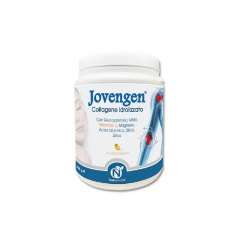 Jovengen Collagene Idrolizzato è un integratore alimentare completo in polvere, formulato per supportare il benessere delle articolazioni, dei tessuti connettivi e della pelle. Grazie alla presenza di collagene idrolizzato altamente biodisponibile, il prodotto contribuisce al mantenimento della struttura e dell’elasticità cutanea. La formula è arricchita con acido ialuronico, utile per favorire l’idratazione e la luminosità della pelle, e con glucosammina, MSM e silicio da estratto di bambù, che supportano la salute delle cartilagini e delle articolazioni. La vitamina C contribuisce alla normale formazione del collagene, mentre zinco e magnesio completano l’azione a favore del benessere generale. Il gusto neutro rende il prodotto versatile e facile da assumere, ideale da sciogliere in acqua, succhi o smoothie. L’assunzione regolare in cicli di almeno 2-3 mesi aiuta a ottenere risultati visibili e duraturi.