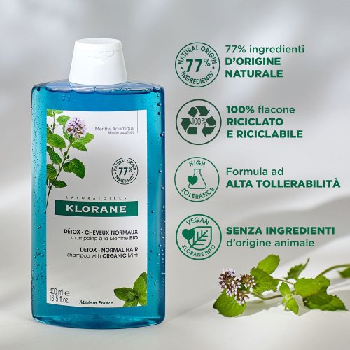 Tag: Klorane, shampoo detox, menta bio, capelli purificati, anti-inquinamento, shampoo rinfrescante, cura capelli, haircare naturale, routine detox, capelli freschi