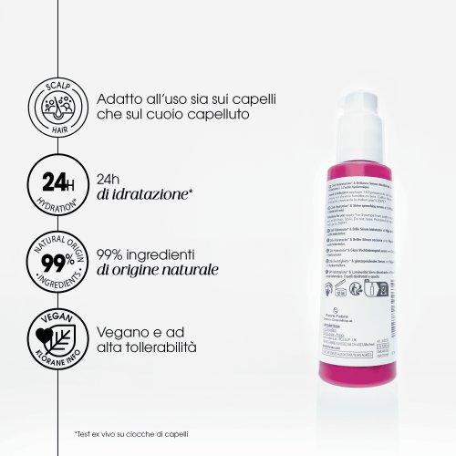 Il Klorane Siero Fico D'India da 100ml è un trattamento senza risciacquo che apporta una profonda idratazione ai capelli e al cuoio capelluto. Arricchito con fico d'India e acido ialuronico, questo siero termoprotettivo offre fino a 24 ore di idratazione continua, donando ai capelli disidratati e spenti una lucentezza naturale e un aspetto sano. La formula del siero è composta al 99% da ingredienti di origine naturale, per una cura delicata e rispettosa dei capelli. Il fico d'India, noto per le sue eccezionali proprietà idratanti, e l'acido ialuronico, che trattiene fino a 1000 volte il suo peso in acqua, lavorano insieme per nutrire in profondità la fibra capillare, contrastando l'effetto crespo. Inoltre, il siero offre protezione contro il calore fino a 200°C, rendendolo ideale per l'uso quotidiano prima dell'asciugatura o della piega.