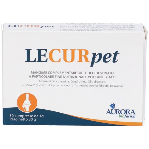 Aurora Lecurpet 30 Compresse è un mangime complementare destinato a cani e gatti, indicato come supporto del fisiologico metabolismo articolare, specialmente in caso di osteoartrite o problemi legati alla mobilità. La sua formulazione completa unisce ingredienti ad azione sinergica come glucosamina, condroitina, olio di pesce ad alto contenuto di omega-3, Curcuvet® (un innovativo estratto di curcuma ad elevata biodisponibilità) e boswellia, noti per i loro benefici sull’apparato osteoarticolare. Questi componenti aiutano a preservare l’elasticità e la funzionalità delle articolazioni, a ridurre le infiammazioni e a migliorare la qualità della vita dell’animale. Ideale per animali adulti, anziani o predisposti a patologie articolari, Lecurpet favorisce il benessere quotidiano in modo naturale, sicuro e scientificamente formulato.