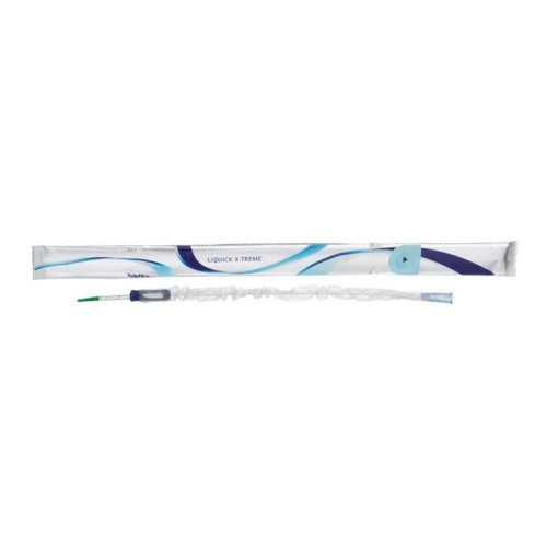 Catetere vescicale autolubrificante idrofilico pre-attivato, pronto per l'uso, in punta Ergothan completo di guaina di protezione con introduttore/punto di presa blu ergonomico, ad una via, per cateterismo vescicale intermittente con sacca graduata integrata da 800 ml. La punta Ergothan è flessibile ed allo stesso tempo stabile al fine di consentire un'apertura graduale dell'uretra facilitando l'inserimento in vescica. I fori del catetere sono atraumatici perch´ arrotondati e smussati sia internamente sia esternamente attraverso la particolare tecnologia di realizzazione: SCE (Soft Cat Eyes) viene quindi preservata la delicata mucosa uretrale. Il tutto per garantire minor traumaticità durante l'inserimento e la rimozione del catetere. La punta Ergothan è colorata in base al codice colore della misura (CH). Studiato pensando alle persone che praticano il cateterismo ad intermittenza alla ricerca di un sistema per cateterismo pratico e sicuro che consenta una vita più attiva. Liquick X-treme è subito pronto all'uso e può essere utilizzato ovunque ci si trovi permettendo dunque Estrema indipendenza, sicurezza e comfort. La sacca raccolta urina graduata integrata da 800 ml consente di effettuare il cateterismo in qualunque luogo.