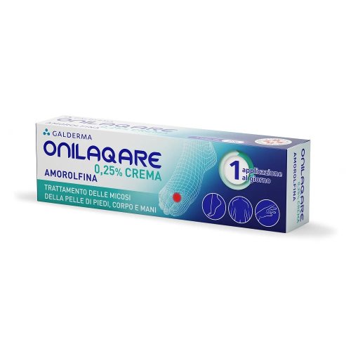 ONILAQARE 0,25% crema è un trattamento dermatologico specifico per le infezioni fungine della pelle (micosi) localizzate su mani, piedi, corpo e altre zone cutanee. La sua efficacia si basa sull’Amorolfina, principio attivo ad ampio spettro d’azione, che elimina i funghi responsabili dell'infezione, contrastando prurito, arrossamenti e desquamazione. La crema è incolore, non macchia la pelle né i vestiti dopo l’assorbimento, ed è ideale anche per trattamenti prolungati. Grazie alla texture leggera e non grassa, si assorbe rapidamente lasciando la pelle idratata e protetta. Adatta all’uso topico su zone localizzate, è particolarmente indicata in caso di: