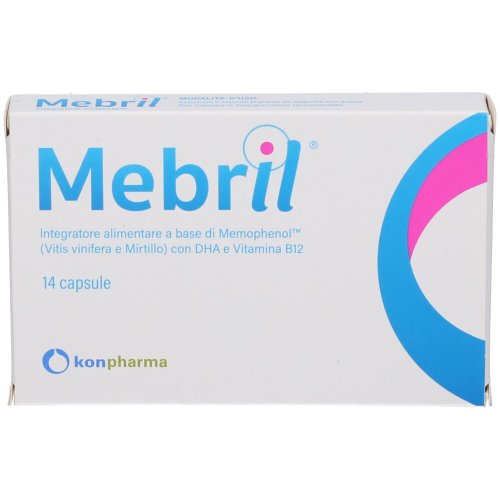 MEBRIL è un integratore alimentare formulato con Memophol®, un estratto standardizzato di Uva (Vitis vinifera) e Mirtillo (Vaccinium angustifolium), arricchito con DHA e Vitamina B12. Il DHA, acido grasso omega-3 essenziale, contribuisce al mantenimento della normale funzione cerebrale, migliorando memoria e concentrazione. La vitamina B12 supporta il corretto funzionamento del sistema nervoso e favorisce la funzione psicologica, aiutando a mantenere lucidità mentale e benessere cognitivo. Mebril è ideale per chi desidera un aiuto naturale per le capacità cognitive e il benessere neurologico, soprattutto in periodi di stress o stanchezza mentale.