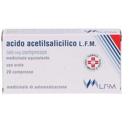 Tag: acido acetilsalicilico, febbre influenza, antidolorifico adulti, LFM farmaco, compresse 500 mg, trattamento sintomi influenzali, dolore muscolare, farmaco da banco, antipiretico, dolore mestruale