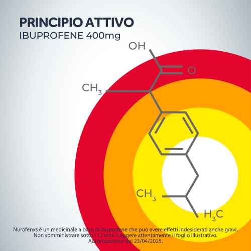 NUROFENXS 400 mg è un medicinale a base di ibuprofene, appartenente alla classe dei Farmaci Antinfiammatori Non Steroidei (FANS), formulato in capsule molli a rapido assorbimento per offrire un sollievo veloce da dolore e febbre.