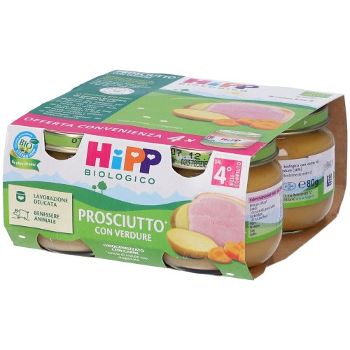 HiPP Bio, Omogeneizzato Prosciutto con Verdure, 4 x 80 g