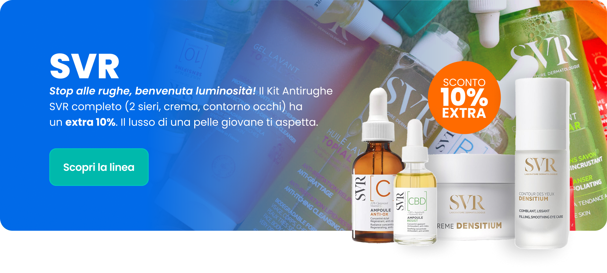 Il Kit Antirughe SVR completo ( 2 sieri, crema, contorno occhi ) ha un extra 10% di sconto