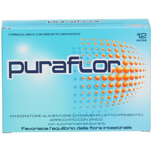 Puraflor Integratore Alimentare Fermenti Lattici Probiotici 12 Bustine è un integratore specificamente formulato per favorire l’equilibrio della flora intestinale e contribuire al benessere del sistema immunitario. Contiene una miscela selezionata di fermenti lattici probiotici vivi (Lactobacillus helveticus, Bifidobacterium longum e Lactobacillus plantarum), che superano la barriera gastrica per arrivare vivi e attivi nell’intestino, dove svolgono un’azione benefica sulla microflora intestinale. L’integratore è arricchito con zinco, che sostiene le difese immunitarie e ha proprietà antiossidanti, e lattoferrina, una glicoproteina utile in caso di alterazioni intestinali dovute a stress, uso di antibiotici, diarrea o alimentazione scorretta. È indicato nei periodi in cui si ha un aumentato fabbisogno di fermenti lattici, come durante o dopo trattamenti farmacologici, sbilanciamenti alimentari, cambi di stagione o viaggi.