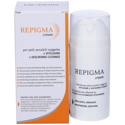 Repigma Cream è una crema dermocosmetica formulata per la cura quotidiana delle pelli sensibili soggette a vitiligine e discromie cutanee. Grazie alla sua composizione bilanciata, svolge un’azione emolliente e idratante, aiutando a mantenere la pelle morbida, elastica e nutrita. La presenza di ingredienti selezionati come burro di karité, olio di mandorle dolci e vitamina E contribuisce a sostenere la barriera cutanea, migliorando il comfort della pelle e contrastando la secchezza. La texture cremosa si assorbe facilmente, rendendo il prodotto adatto all’uso quotidiano.