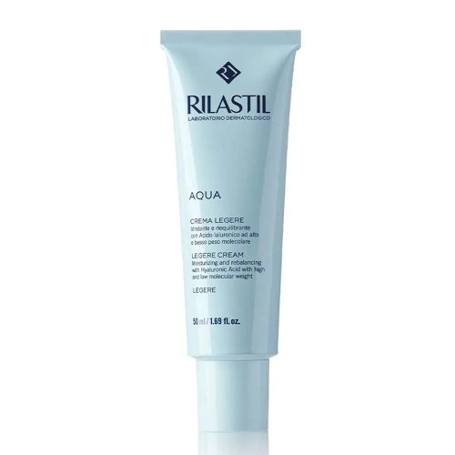 Tag: Rilastil, Aqua, crema legere, idratante viso, pelle normale e mista, texture leggera, rapido assorbimento, base trucco, 50ml