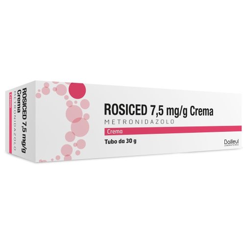 Rosiced 7,5 mg/g crema è un farmaco specifico per il trattamento topico delle manifestazioni papulo-pustolose infiammatorie della rosacea. La sua formula a base di metronidazolo 0,75% aiuta a ridurre arrossamenti, brufoli e irritazioni cutanee associate a questa patologia. Grazie alla sua azione antibatterica e antinfiammatoria, agisce efficacemente sulla pelle del viso interessata, migliorandone l’aspetto e il comfort. La crema è arricchita con eccipienti emollienti e regolatori di pH, studiati per garantire un’applicazione delicata e un’ottima tollerabilità cutanea. È indicata per adulti e anziani, mentre non è raccomandata per bambini e adolescenti.