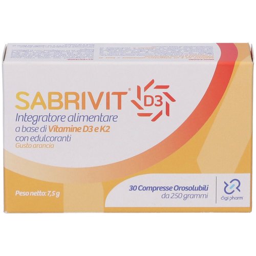 Sabrivit D3 di Digi-Pharm è un integratore alimentare in compresse, a base di vitamina D3 e vitamina K2, con edulcoranti, pensato per supportare la salute di ossa, muscoli, denti e sistema immunitario. La vitamina D3 svolge numerose funzioni essenziali: