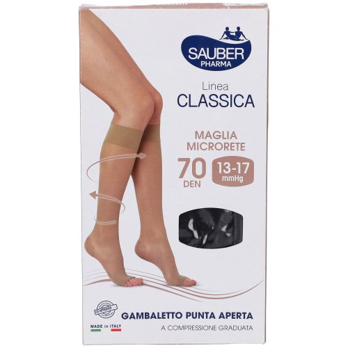 Tag: Sauber, calze compressive, gambaletto punta aperta, calze a compressione graduata, calze elastiche preventive, benessere gambe, varici, gonfiore alle gambe, calze donna nere, taglia 2, calze 70 den, calze Sauber Classica